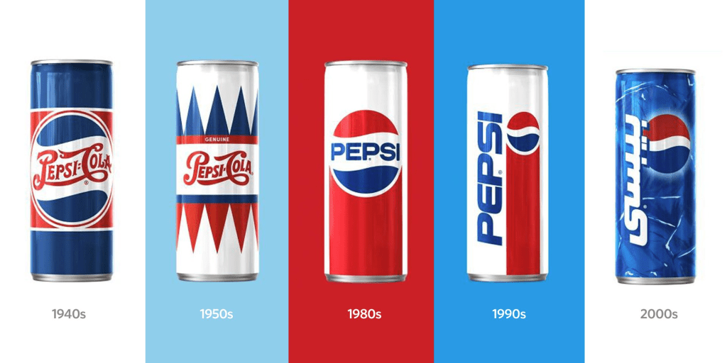 Type can signify a time period: Fonts have become synonymous with cultural and historical time periods. This often goes hand in hand with fonts used in branding. The example above of a Pepsi can through the years emphasizes nostalgia. That 1980s branding was correlated to the beginning of the digital revolution. Many fonts that came out of the digital revolution emphasized pixelized sans-serif typefaces. This has become culturally significant and can now be recognized with the time period when used.